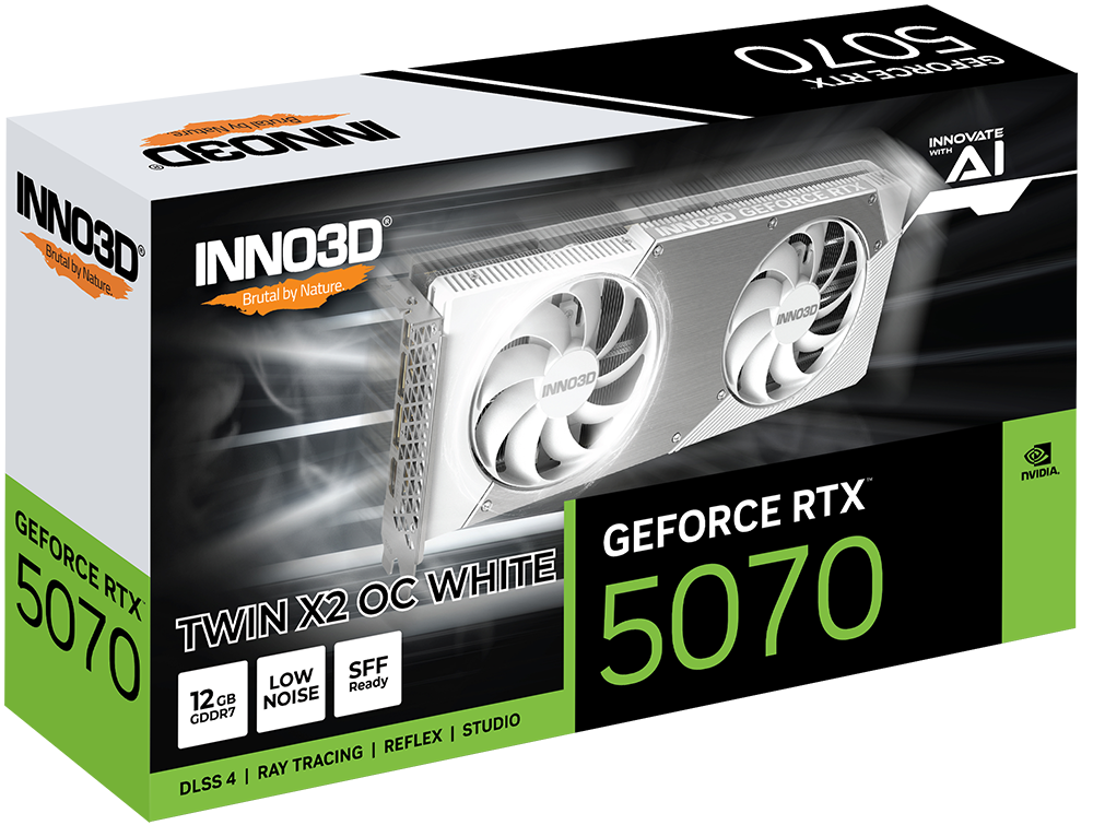 Sức mạnh của RTX 5070 INNO3D TWIN X2 OC WHITE OC đến từ kiến trúc NVIDIA Blackwell tiên tiến. Card được trang bị: