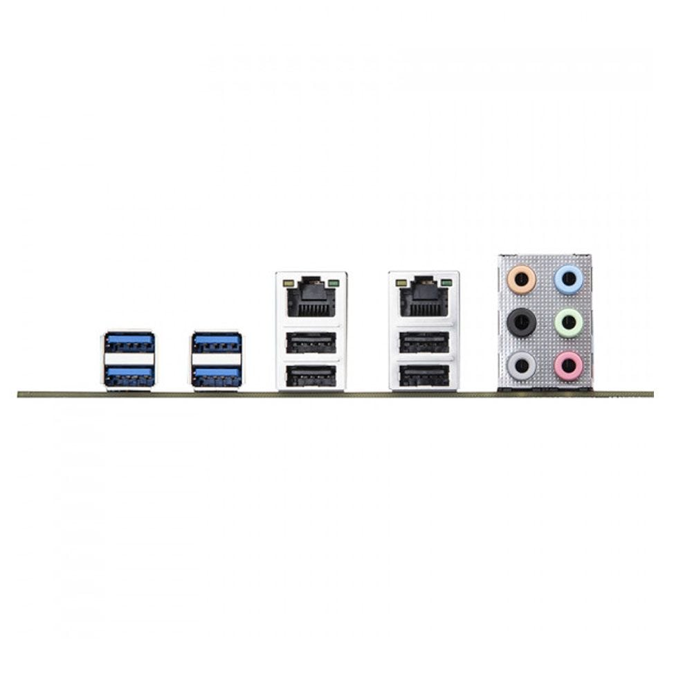 - Cổng I/O phía sau: 4 x USB 2.0, 4 x USB 3.0, 2 x RJ-45 LAN, 6 x 3.5mm Audio Jacks.