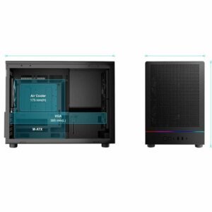 - Không gian mở rộng: Thùng máy tính có không gian rộng rãi để phù hợp với các card đồ họa mạnh nhất. Vùng quản lý dây cáp rộng 34mm và có kênh định tuyến rộng 46mm giúp cho việc quản lý dây cáp trở nên dễ dàng hơn.