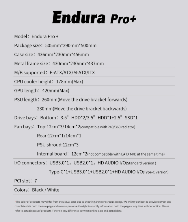 - Hỗ trợ Mainboard: E-ATX/ATX/MATX/ITX
